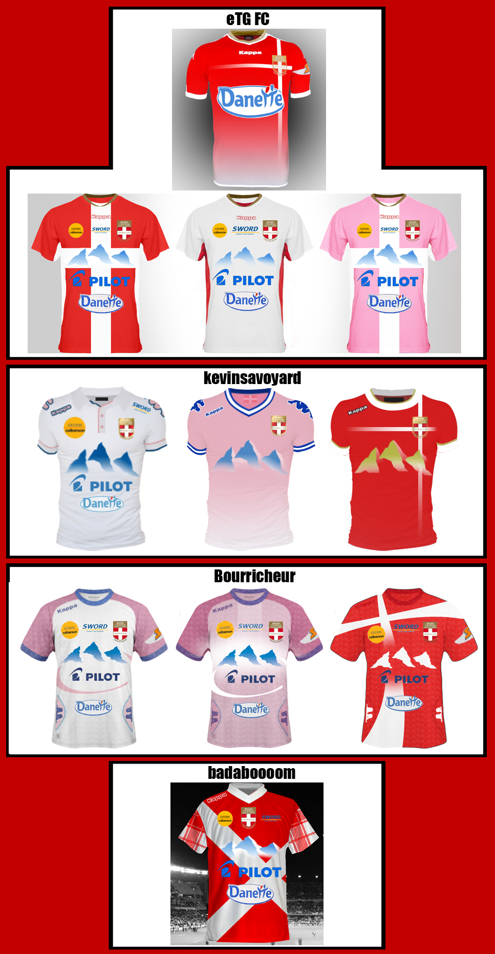 ! J'ai vraiment adoré la veste blanche que nos joueurs ont arborés lors de la finale, du coup j'ai tenté un maillot semblable avec une mode assez old school (avec un col de polo, à la manière du Benfica) ! Pour le maillot rouge, j'me suis inspiré de la superbe création de eTG FC qui a vraiment fait un super maillot l'année dernière (et qu'on ne felicitera jamais assez pour sa création