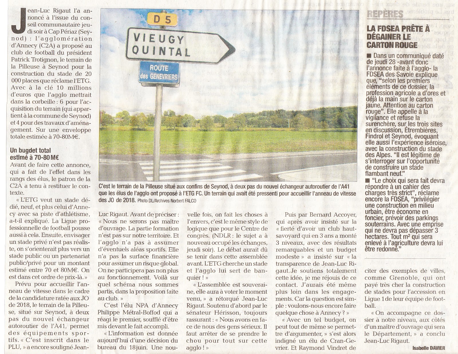 Je rappelle encore qu'un stade à Findrol serait toujours plus près pour un Annécien que pour un Thononais (et pire encore pour un Evianais ou autre).